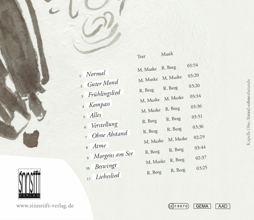 | Startseite | NEUERSCHEINUNG 2025: KAPELLE OHNE ABSTAND mit dem Album "ohne abstand" | ||||||||||